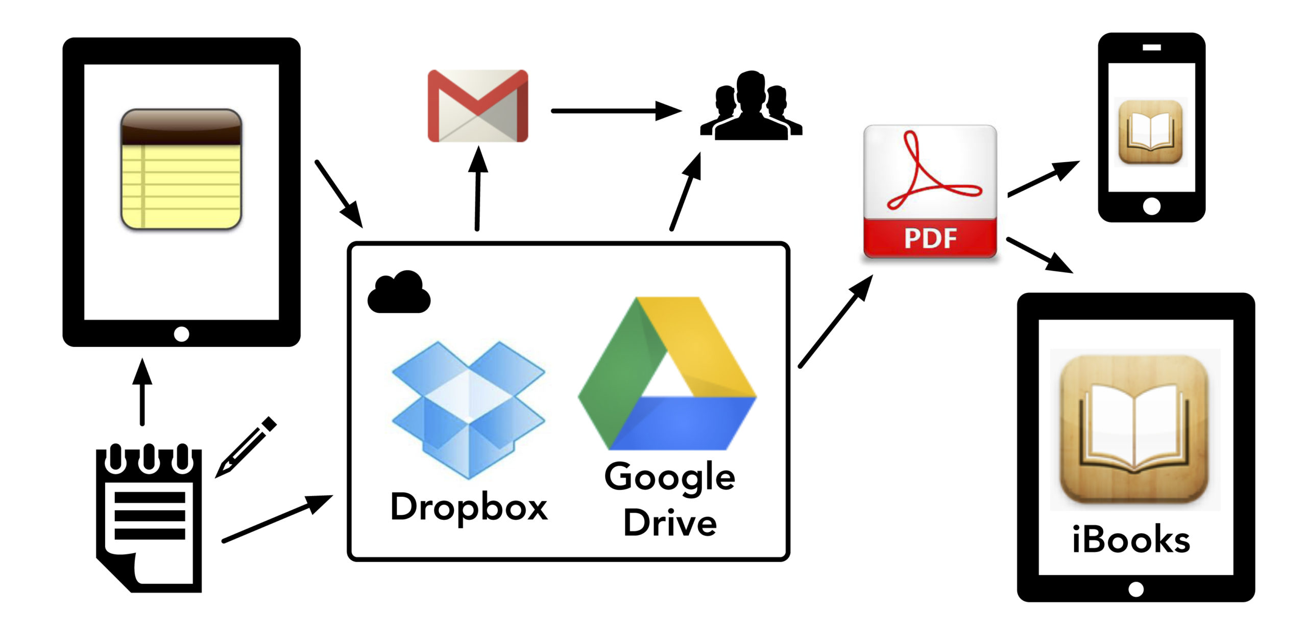 Informationsarkitektur må låta högtidligt. Vad jag åsyftar är en åskådlig beskrivning av hur man lämpligen använder sin pekplatta, sin smarta telefon och sin dator. Och jag konkretiserar det till de verktyg jag använder just nu, utan att fördenskull säga att iPhone, iPad, Mac, Acrobat, Google Drive, Dropbox och Skype vore allena saliggörande tidsenliga instrument. Det mesta i den föreslagna arkitekturen har sina motsvarigheter om du kör Android, Lumia, Windows eller Ubuntu i stället.